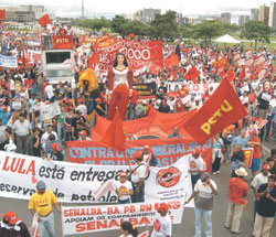 O dia 25 ficou marcado como a terceira grande mani-festação contra o governo. Em 2003, tivemos uma mobili-zação de cinqüenta mil pessoas na greve do funcionalismo federal contra a reforma da Previdência. Em 16 de junho deste ano, a Conlutas colocou 20 mil manifestantes em Brasília, também contra as reformas Sindical, Trabalhista e Universitária.