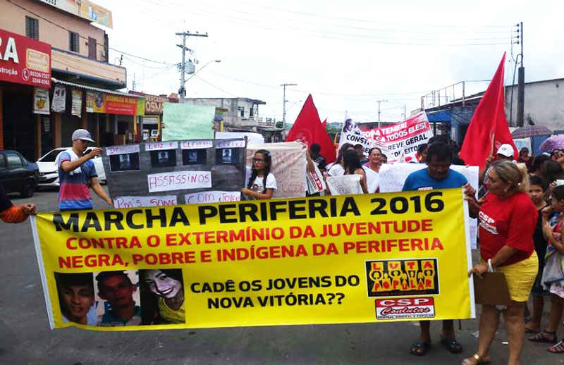 Entre os manifestantes que marcharam estavam os familiares e amigos dos três jovens que estão desde o dia 29 de outubro desaparecidos. Os jovens sumiram após uma abordagem policial. Os familiares afirmaram à imprensa que temem retaliação da polícia e que só participaram do ato por conta do apoio da CSP-Conlutas.