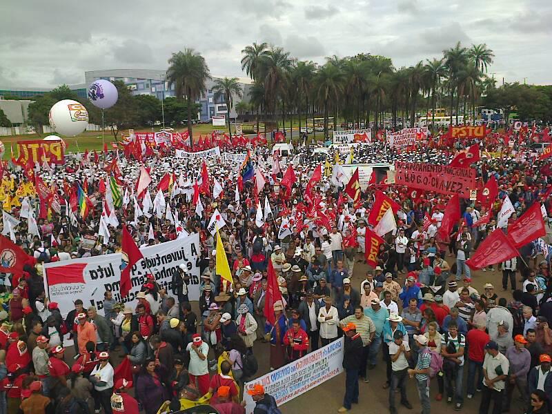 A marcha contra a política econômica do governo federal já ocupa as ruas de Brasília. Caravanas de ônibus de todas as regiões do país trouxeram milhares de manifestantes à capital federal. A marcha saiu da frente do Estádio Nacional (Mané Garrincha) e já está na Esplanada dos Ministérios.