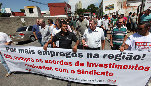 Trabalhadores da General Motors, em São José dos Campos, realizaram uma passeata, na manhã desta quarta-feira, dia 8, para mostrar que não aceitarão as demissões realizadas pela montadora no dia 1º de janeiro. A passeata aconteceu logo após a assembleia organizada pelo Sindicato dos Metalúrgicos de São José dos Campos, filiado à CSP-Conlutas, e seguiu até a Prefeitura. Uma comissão de trabalhadores e dirigentes sindicais foi recebida pelo prefeito em exercício Itamar Cóppio.