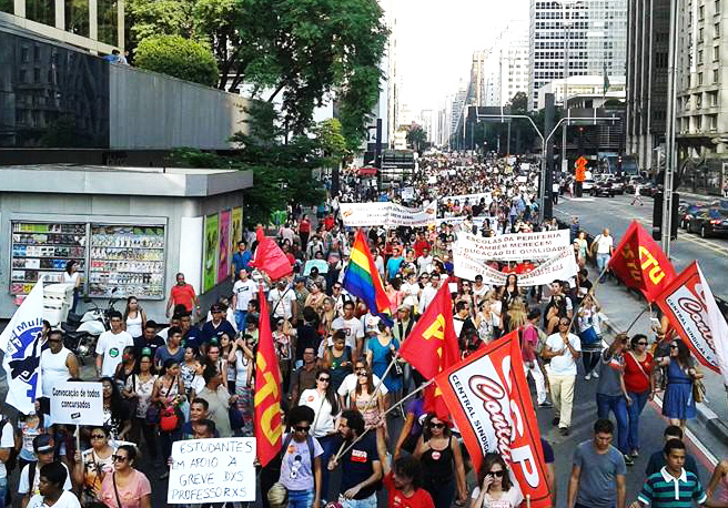 Os professores estão fazendo sua luta para construir um campo distinto do governo Dilma e da oposição de direita. Defendemos a construção de uma Greve Geral nesse país, pela pauta dos trabalhadores, que derrote o ajuste de Dilma e dos governadores, que exija a prisão e confisco de bens de corruptos e corruptores. Nossa luta se fortalece e nesse momento que professores do Pará, Roraima e Santa Catarina estão em greve, e após o exemplo de luta dos trabalhadores em educação do Paraná, temos unificar nossas lutas. É no calor destas lutas, junto com os estudantes que construímos o 26 de março – dia Nacional de luta em defesa da Educação Pública!