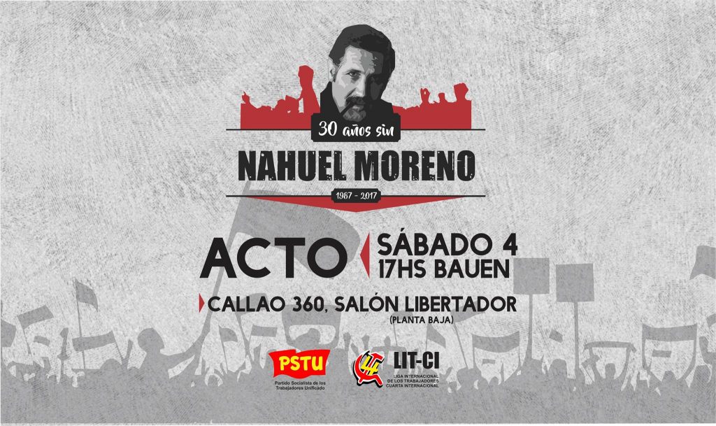 Este ano, além disso, é o centenário da Revolução Russa. O PSTU da Argentina (partido irmão do PSTU no Brasil) e a LIT farão um ato dos “30 anos sem Moreno”. Será no dia 4 de fevereiro, às 17h no Hotel Bauen (Av Callao 360, no salão Libertador Simón Bolívar).