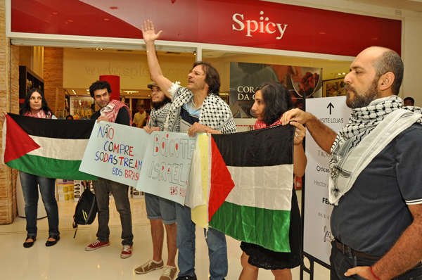 Organizado pela Frente em Defesa do Povo Palestino – a qual o PSTU integra –, o “rolezinho palestino” ocorreu no Shopping Higienópolis, em frente à loja Spicy, que anuncia em seu site a venda de uma máquina de gaseificação caseira da marca Sodastream, com fábrica instalada em assentamento na Cisjordânia, território palestino ocupado militarmente por Israel. Na ocasião, um vendedor da loja afirmou aos ativistas que não vende mais Sodastream, muito embora o site da rede continue a anunciar o produto.