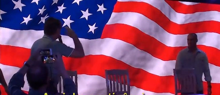 Além de machista, homofóbico, racista, representante do militarismo autoritário e inimigo declarado dos trabalhadores, Bolsonaro é um lambe botas do imperialismo. Nada mais bizarro que o vídeo em que ele bate continência à bandeira norte-americana durante sua passagem pela Flórida.