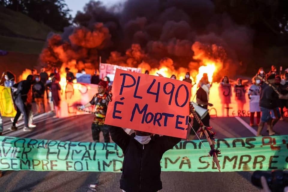Indígenas bloqueiam rodovia em São Paulo contra o PL 490