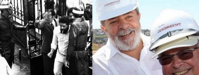 Não por acaso, as imagens predominantemente utilizadas são sempre a do jovem Lula com cabelo desgrenhado e barbudão preso pela Ditadura Militar, em 1980, e não a do Lula presidente com cabelo bem cortado, barba aparada e engravatado; o “cara” que governou por oito anos a serviço da burguesia brasileira e do imperialismo.