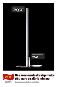 Como parte da campanha contra o aumento de salário dos deputados, o PSTU lançou, esta semana, um cartaz e um boletim para serem distribuídos em todo o país. O boletim, além do tema dos deputados, também trata das enchentes e dos direitos trabalhistas e aposentadorias.