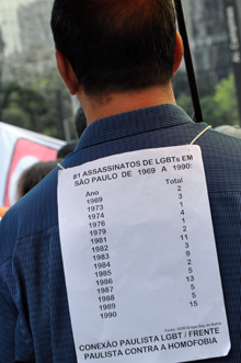 25 de janeiro: Um grupo de rapazes vestidos de preto atacou com garrafas um estudante de 27 anos, que levou uma garrafada no olho direito e foi parar no hospital. O ataque ocorreu num dos espaços mais frequentados pela comunidade GLBT, a esquina das ruas Frei Caneca e Peixoto Gomide.