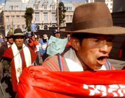Desde a segunda-feira que os deputados tentam realizar as sessões do Congresso. Em vão. Os manifestantes cercam os deputados e impedem a sua entrada. Com o piquete permanente, o Congresso ainda não conseguiu reunir o número de parlamentares necessário para discutir a proposta de um plebiscito sobre a autonomia dos departamentos, nome do país para os estados. A autonomia é exigida por quatro departamentos, entre eles o de Santa Cruz, o mais rico do país e que concentra uma burguesia branca e reacionária, que exige o desmembramento do país. Estes setores também pedem a repressão aos protestos e, nesta quinta, levaram às últimas consequências. O grupo União Juvenil Cruzceñista, claramente racista, atacou uma marcha de camponeses em Santa Cruz, golpeando sem piedade os manifestantes.