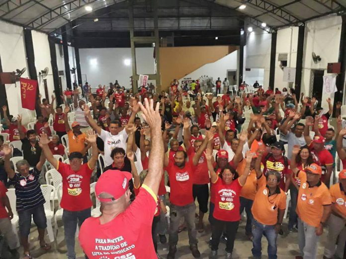 “A Convenção Coletiva da categoria garantiu que até agora os patrões não pudessem aplicar seu pacote de maldades sobre os trabalhadores. Foi na luta que a gente disse que aqui não ia ter reforma trabalhista. E esse ano nós vamos mostrar pra eles que se mexer com os direitos dos operários não vai subir um tijolo nessa cidade”, dizia Zé Batista, diretor do sindicato e membro da Executiva nacional da CSP Conlutas.