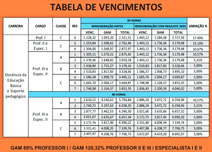 Em segundo lugar, quando falamos de piso salarial, não estamos falando de remuneração e sim de salário. Veja abaixo que, de acordo com a tabela que Dino vai implantar, os vencimentos desses professores 40h em início de carreira será de apenas R$ 2.886,00. A outra parte é a Gratificação por Atividade no Magistério (GAM) que pode ser retirada a qualquer momento.