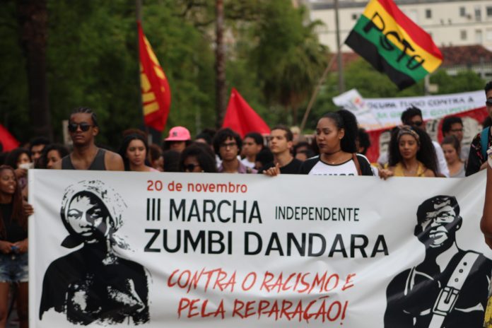 “Pisa ligeiro, pisa ligeiro, quem não pode com o quilombo não atiça os seus guerreiros”. Foi assim, entoando frases de resistência e luta, que o Parque da Redenção, na capital gaúcha, enegreceu nesse dia 20, Dia da Consciência Negra, na III Marcha Zumbi Dandara Independente. A caminhada fez parte das atividades do Novembro Negro e foi construída por diversas correntes, em contraposição à marcha governista e para lutar contra o racismo e pelas reparações históricas diante do crimes cometidos contra o povo negro durante séculos e até hoje.
