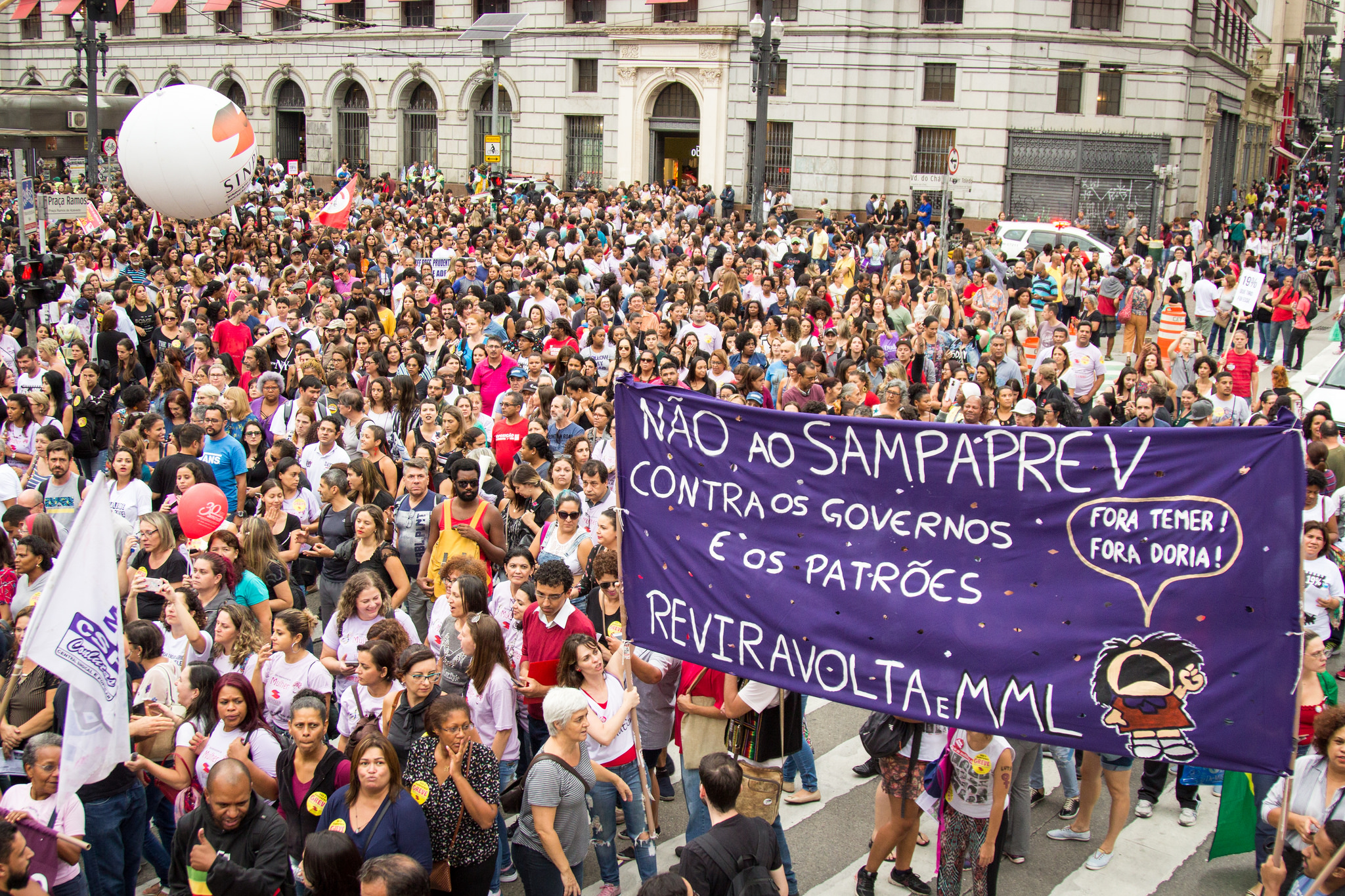 No dia 15 de março, cerca de 60 mil trabalhadores, a maior parte professores, tomaram as ruas do centro de São Paulo. O protesto foi contra a reforma da Previdência apresentada pelo ex-prefeito Fernando Haddad (PT) e retomada pelo atual, João Doria (PSDB).