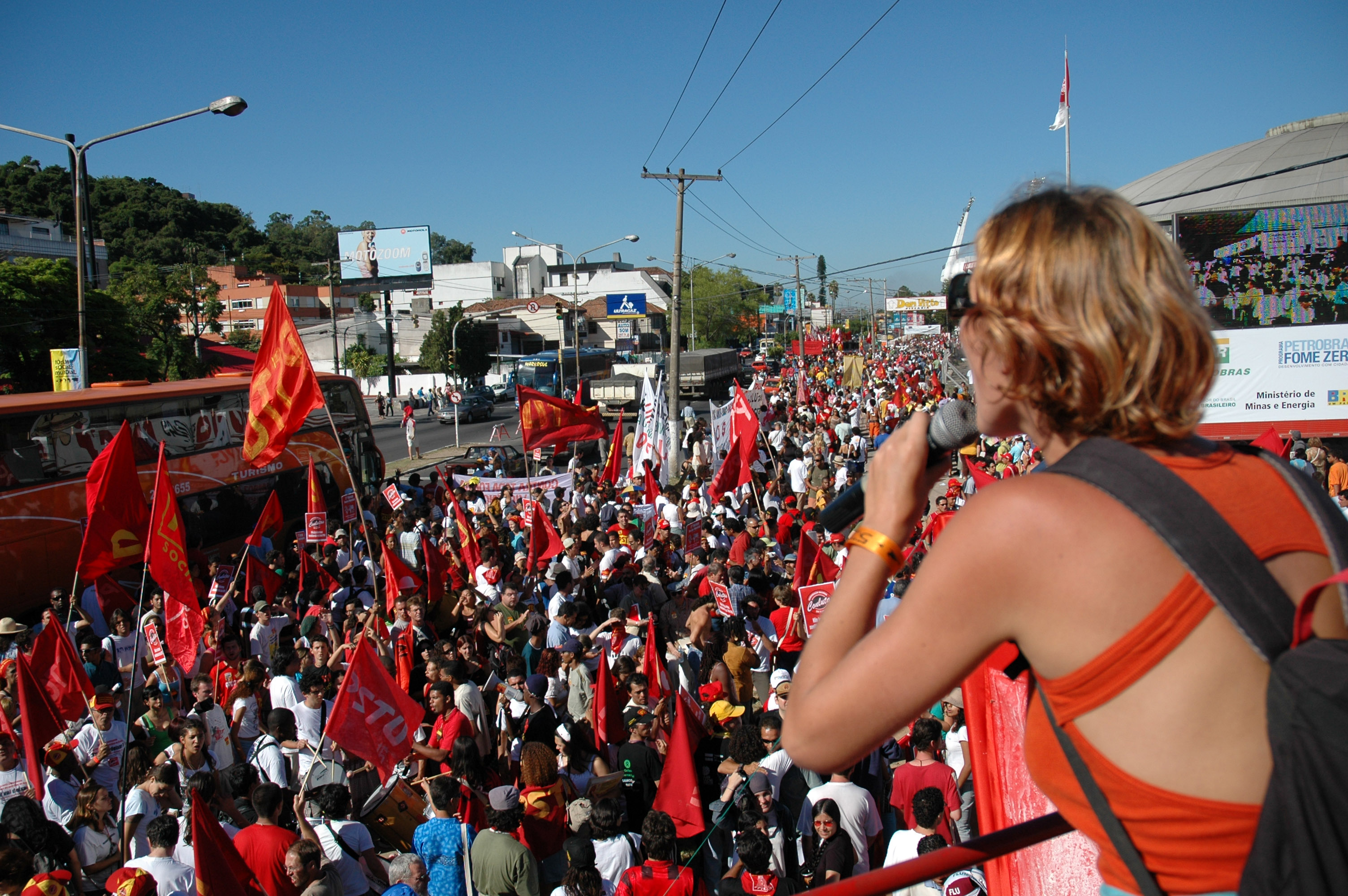 Dois anos depois de ser recebido com festa, Lula receberá vaias no FórumJá são mais de dois mil manifestantes em frente ao estádio Beira-Rio, do Internacional, aguardando a chegada do presidente Lula. Com faixas e bandeiras, os ativistas da Conlutas, Conlute, PSTU e P-SOL, entre outros partidos e organizações, protestam contra as reformas de Lula e cantam muitas músicas, como “Ô Lula, mas que triste, um operário governando pra elite“.