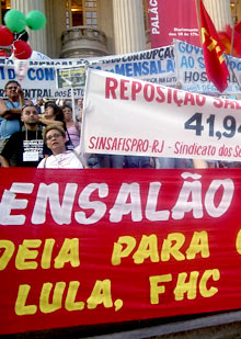 Na quinta-feira, dia 30 de junho, um grande ato percorreu o Centro do Rio de Janeiro, no maior protesto contra a corrupção do governo Lula realizado até agora. A passeata saiu da Candelária, por volta das 14h, e percorreu as principais ruas do Centro, em direção à Assembléia Legislativa (Alerj). No caminho, servidores de diversos órgãos, como os do Ministério da Cultura, foram se juntando à manifestação, que ocupou todas as pistas da Avenida Rio Branco. No final, na Alerj, cerca de 500 policiais civis, em greve, se somaram ao protesto.
