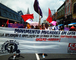 A coluna do Mulheres em Luta entou palavras de ordem de exigência ao governo Dilma, cobrando a ampliação da Lei Maria da Penha e o maior investimento nas áreas sociais, que possibilitem acesso à saúde pública de qualidade, à educação, à moradia, entre outras demandas que são urgentes para as trabalhadoras brasileiras. O protesto seguiu ao som de “Não, não, não! Maria da Penha tem que ter ampliação!” e “Oh, oh, oh, Dilma, eu quero ver abrigo e creche acontecer!”. A exigência ao governo federal foi a diferenciação fundamental entre o MML e os movimentos policlassistas como a Marcha Mundial de Mulheres (PT), que atuou de forma completamente despolitizada durante toda a marcha.