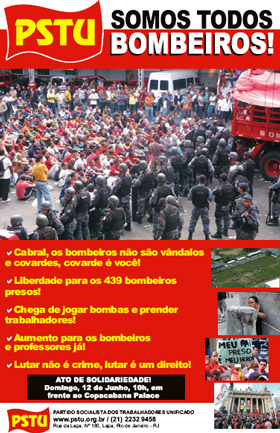 O PSTU acompanha desde o início a mobilização dos bombeiros do Rio em defesa dos salários e condições dignas, e agora contra a repressão e a criminalização imposta pelo governo Sérgio Cabral. Os militantes do partido prestam sua incondicional solidariedade aos trabalhadores, tanto nas manifestações públicas quanto na tentativa de negociação com o governo.