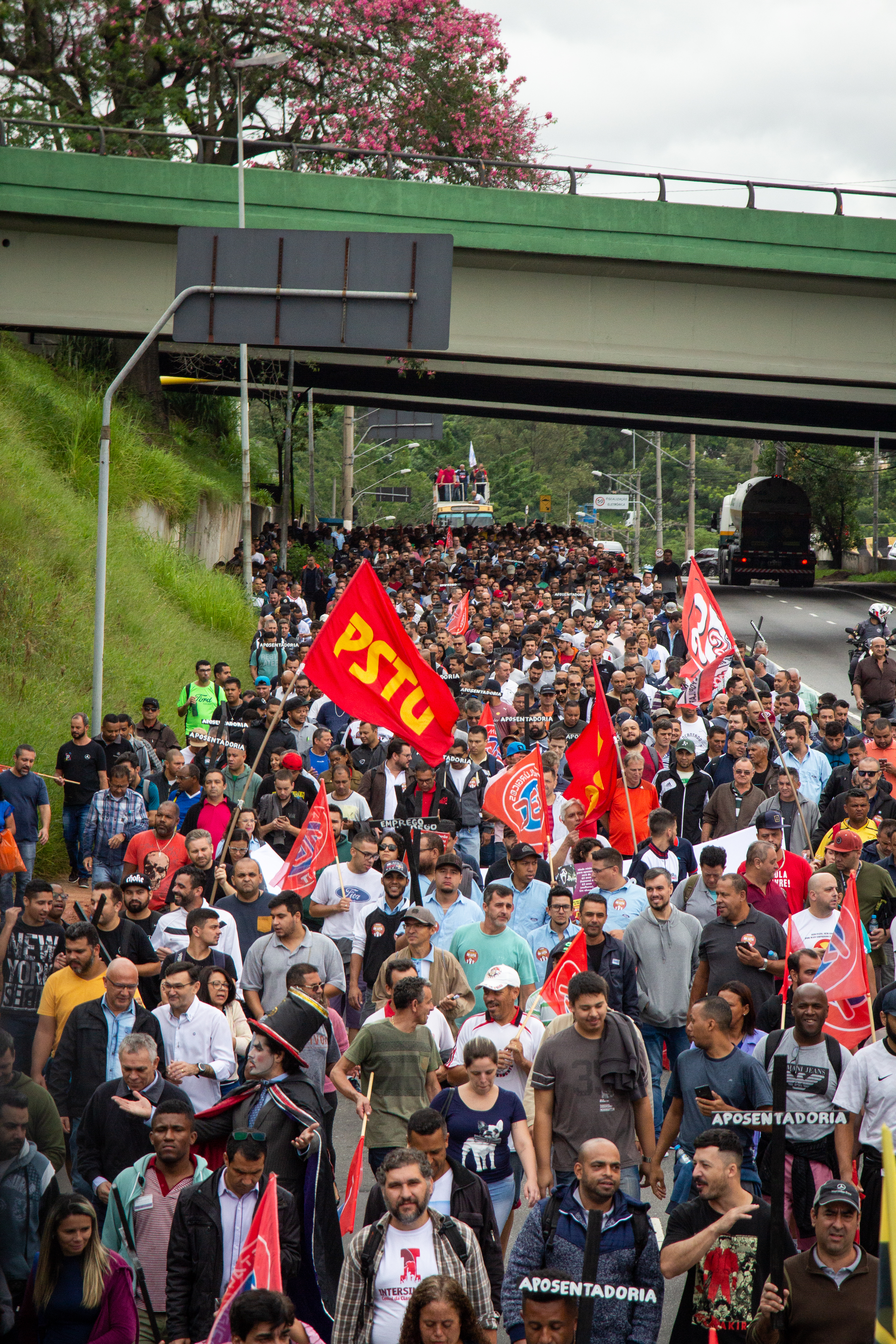 Uma parte dos que passam por nós e veem nossas bandeiras vermelhas nos olha com desconfiança. Isso é um reflexo da desilusão no PT, falsamente associado ao socialismo. Para ficar bem claro: não temos nada a ver com o PT, fomos oposição a todos os seus governos.