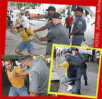 Gás lacrimogêneo e de pimenta, cães e cassetetes. A Reitoria da Universidade Federal Fluminense, em Niterói chamou a PM para reprimir o protesto pacífico dos grevistas, na terça, 25/10. Os manifestantes foram violentamente espancados. O estudante de econoEra para ser mais uma manifestação pacífica dos técnicos-administrativos, estudantes e professores da UFF, em greve há dois meses. A ADUFF e o DCE participavam do protesto marcado pelo Sintuff para às 9h, no campus do Valonguinho. Chamada pela Reitoria da UFF, a PM reprimiu com violência a manifestação. Gás de pimenta, gás lacrimogêneo e cães foram usados contra os manifestantes que foram espancados pelos policiais.