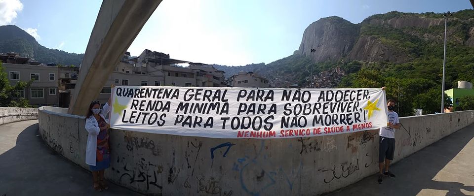 Diante disso, profissionais de saúde, médicos e enfermeiros protestaram no Rio de Janeiro, em Brasília e outros municípios, e o movimento “nenhum serviço de saúde a menos” lançou um manifesto pela quarentena total e a requisição imediata pelo SUS de todos os leitos dos hospitais públicos e privados.