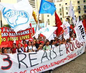 Estudantes saem às ruas contra a tarifa mais alta do paísNo final da tarde desse dia 27 de janeiro, milhares de estudantes saíram às ruas da capital paulista para protestar contra o aumento da tarifa do transporte público. Foi a terceira manifestação contra o aumento das passagens, que vão passar de R$ 2,70 para R$ 3, a mais alta tarifa do país.