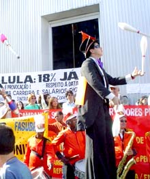 Como os servidores fazem mágica e malabarismo com o salário para poder garantir a sua sobrevivência com tantos anos de arrocho, dois artistas representaram essa idéia no ato. Além disso, foi amplamente distribuída uma carta aberta explicando à população os motivos da paralisação, junto com uma bala, simbolizando o baixo valor do reajuste de 0,1% proposto pelo governo este ano.