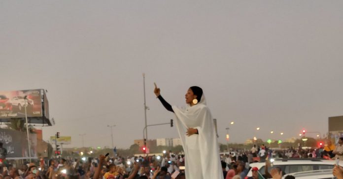 Em 2019 correu o mundo, através das redes sociais, uma foto de uma jovem mulher sudanesa, usando um thoub1 branco e brincos em formato de disco de cor dourada2, falando do teto de um carro para centenas de pessoas que atentamente a escutavam.
