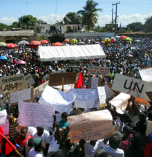 Sindicalista denuncia o verdadeiro papel das tropas de ocupação no país e a volta do duvalierismo sob o novo...