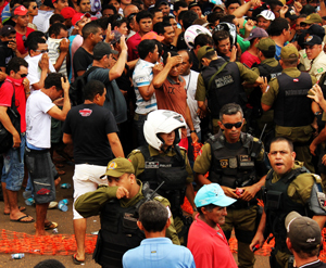 O exemplo de Porto Velho é o mais emblemático neste processo de criminalização dos movimentos. Desde a greve no Complexo do Rio Madeira, no ano passado, quando tornaram-se público e notórios os descalabros das empreiteiras Camargo Correia, Odebrecht e suas terceirizadas, sempre com a conivência do Governo Federal; a Força de Segurança Nacional foi chamada para garantir a continuidade dos trabalhos. Desde então, no cumprimento de seu trabalho de manter a ordem´, tropas ocupam o local exibindo armamento pesado e intimidando os trabalhadores.
