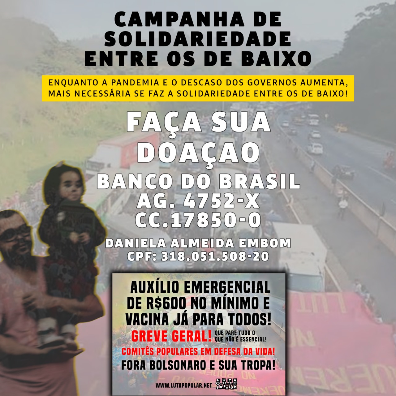 “Além da solidariedade ativa de classe, nós estamos impulsionando uma campanha política pelo ‘Fora Bolsonaro, Mourão e toda sua tropa’, pois só tirando esse governo genocida vamos conseguir superar a crise social e sanitária em que estamos”, completa a dirigente.