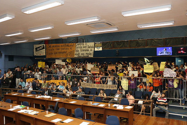 Estas propostas ganham força justamente quando crescem as lutas em defesa da educação. No momento em que os estudantes deram grande demonstração de opinião crítica, e ocuparam as escolas contra uma política do Estado. Quando o Brasil vive uma crise política que faz com que a população questione, com toda razão, os grupos políticos tradicionais. Não é por outro motivo que vereadores, deputados e senadores tentam fazer parecer que essa ideia veio da sociedade por meio do Movimento Escola Sem Partido, ligado a partidos de direita.