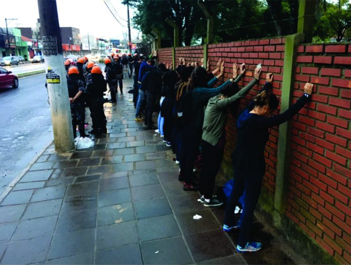 Desarmadas e permanecendo cerca de 45 minutos com as mãos para cima, sete mulheres abordadas pela Brigada Militar de Porto Alegre (RS), sofreram – sem filtro – a violência da opressão machista, racista e LGBTfóbica, combinada com a repressão brutal da polícia.Elas estavam junto com mais de 120 pessoas que saíram da manifestação em frente à empresa de transporte Carris, no dia 30 de junho, dia de lutas e paralisações em todo o país.