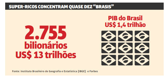 São hoje 2.755 bilionários no planeta, cujo patrimônio totaliza US$ 13 trilhões. Quase nove vezes o Produto Interno Bruto (PIB) do Brasil em 2020. Esses super-ricos viram suas fortunas aumentarem mais de US$ 5 trilhões na pandemia. Dos novos bilionários, 210 vêm da China. A Índia, que vem competindo com o Brasil para se tornar o epicentro do morticínio, com piras coletivas a céu aberto para cremar as vítimas, responde por 19 novos bilionários.